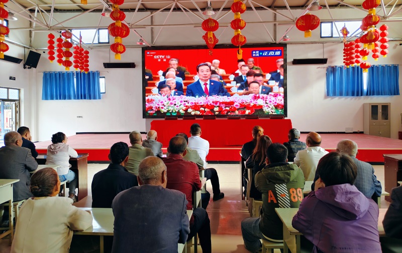 疏附县辽园镇艾日克贝西村:工作队队员与村民同看庆祝大会